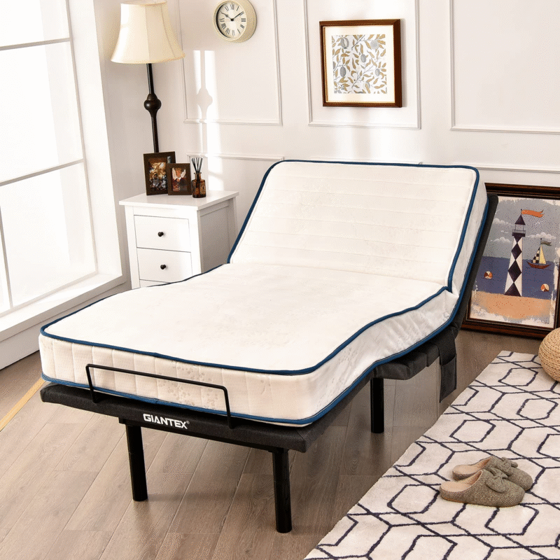Are you looking for an adjustable bed base that makes your night more enjoyable? Our bed frame is your ideal choice. It is made of high-quality materials and components. This adjustable bed features 4 massage modes for your preference and vibration massagers on the head and foot to relax your body. A Wireless remote with…