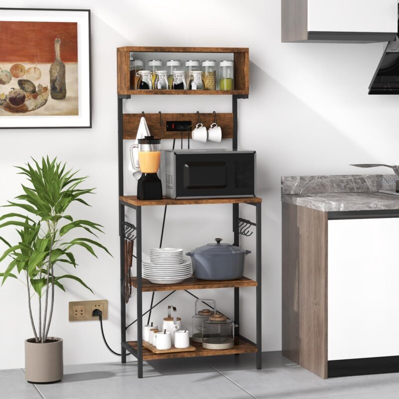 Versatile Storage Space: The rolling microwave stand provides you with 5-tier ample storage space, which is fitted with semi-translucent doors for dust-proof storage. Then you can keep kitchen appliances, tableware, snacks, pots and pans in order. Versatile Storage Space: The rolling microwave stand provides you with 5-tier ample storage space, which is fitted with semi-translucent…