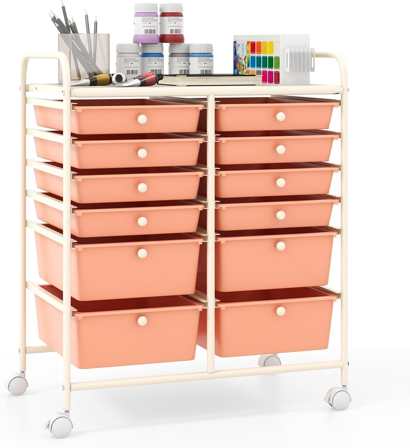 12 Drawer Rolling Storage Cart Tools Scrapbook Paper Office School Organizer