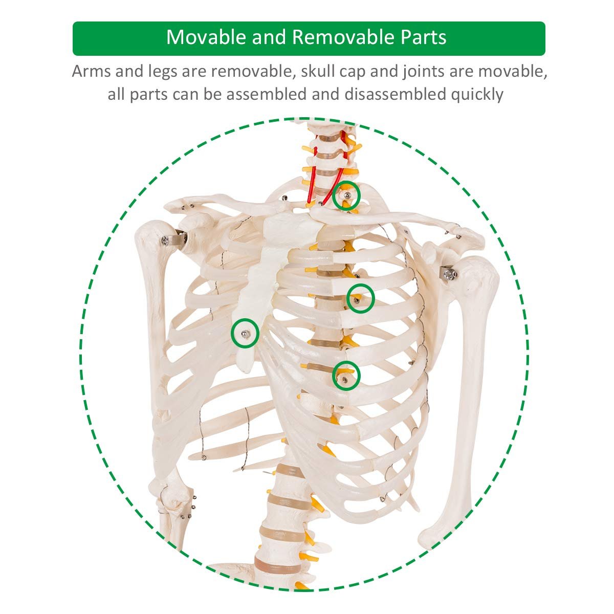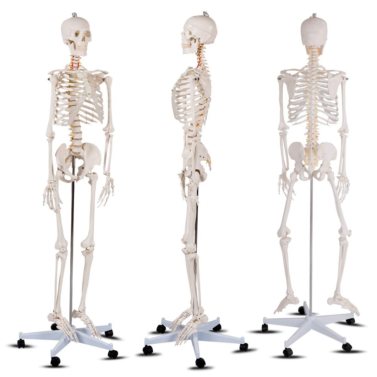 70.8″ Life Size Skeleton Model, with Roller Stand, 2 Casters with Brake, Removable Parts, Anatomical Poster and Dust Cover