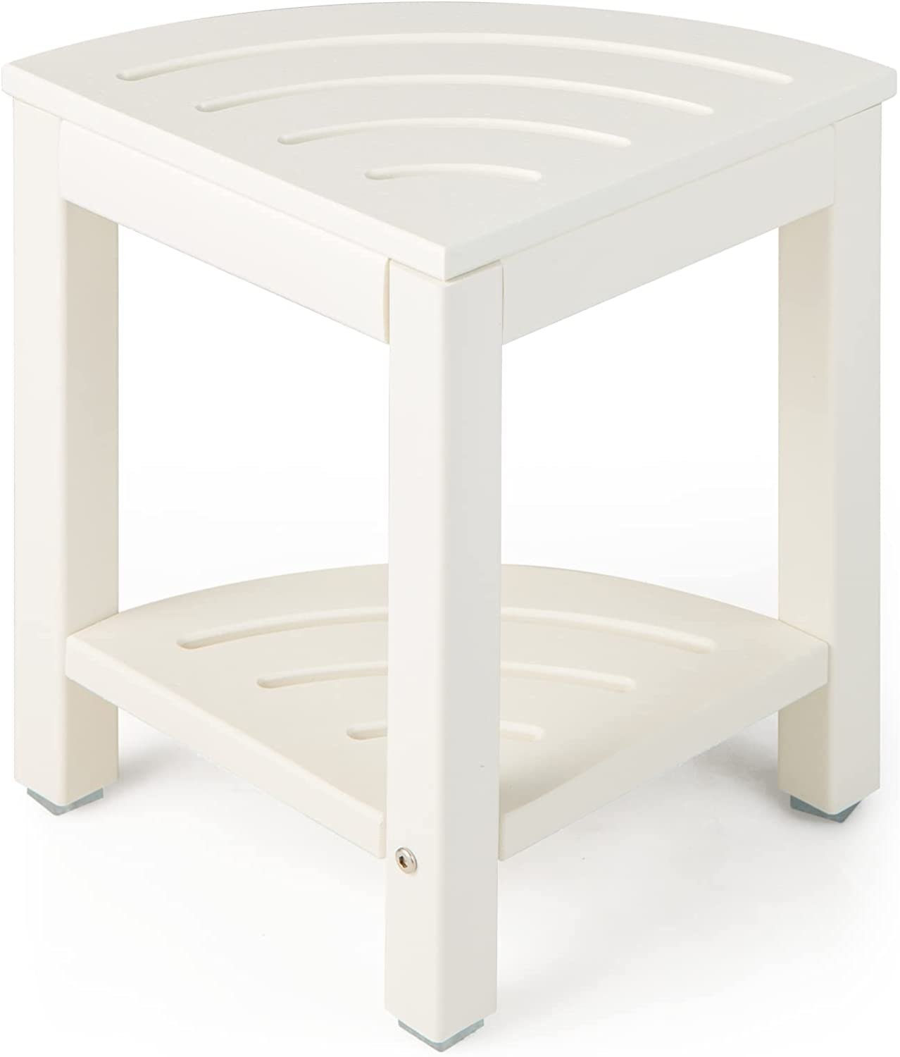 Corner Shower Stool Waterproof – HDPE Shower Bench Seat with Storage Shelf