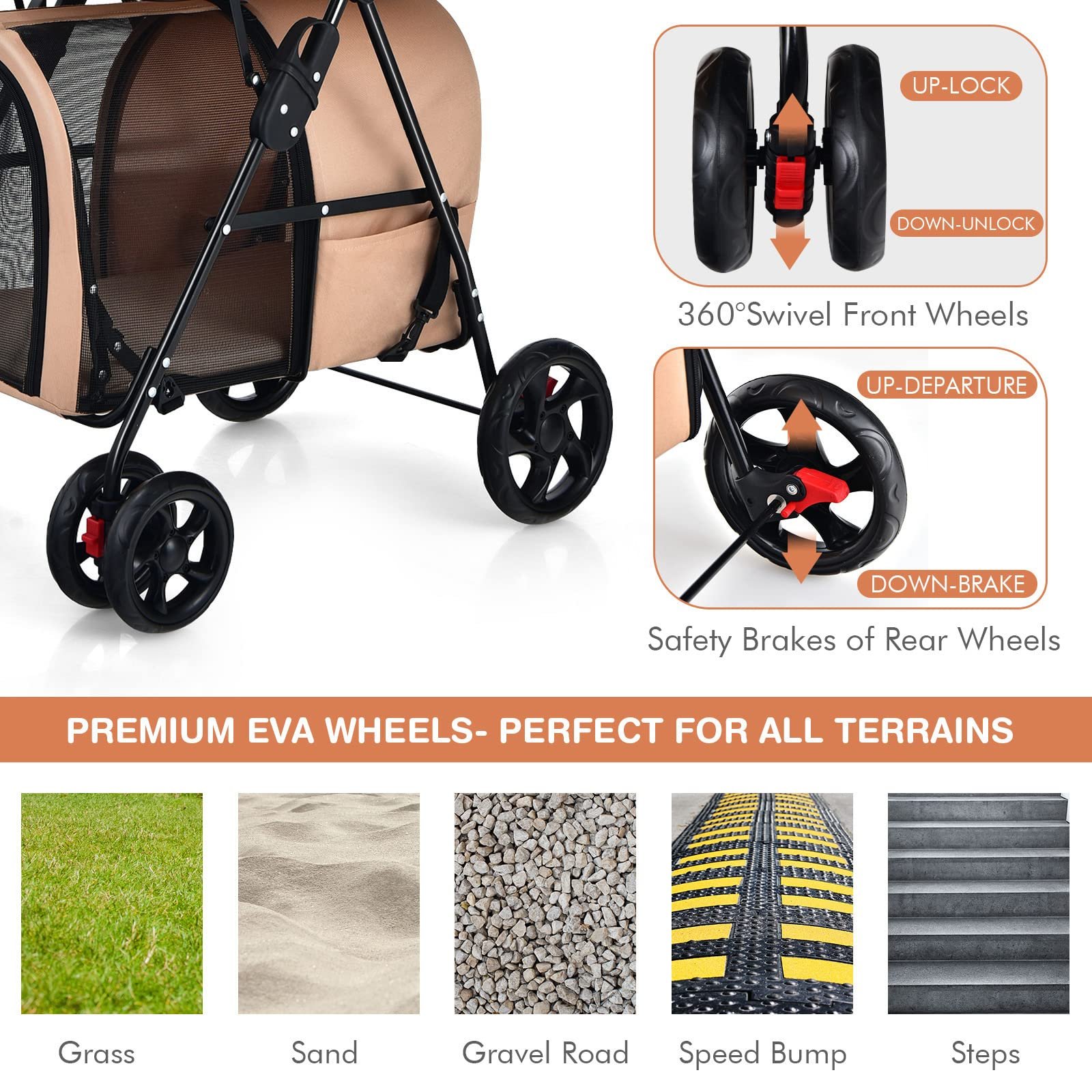 Double Pet Stroller with 2 Detachable Carrier Bags, 4 Lockable Wheels Cat Stroller