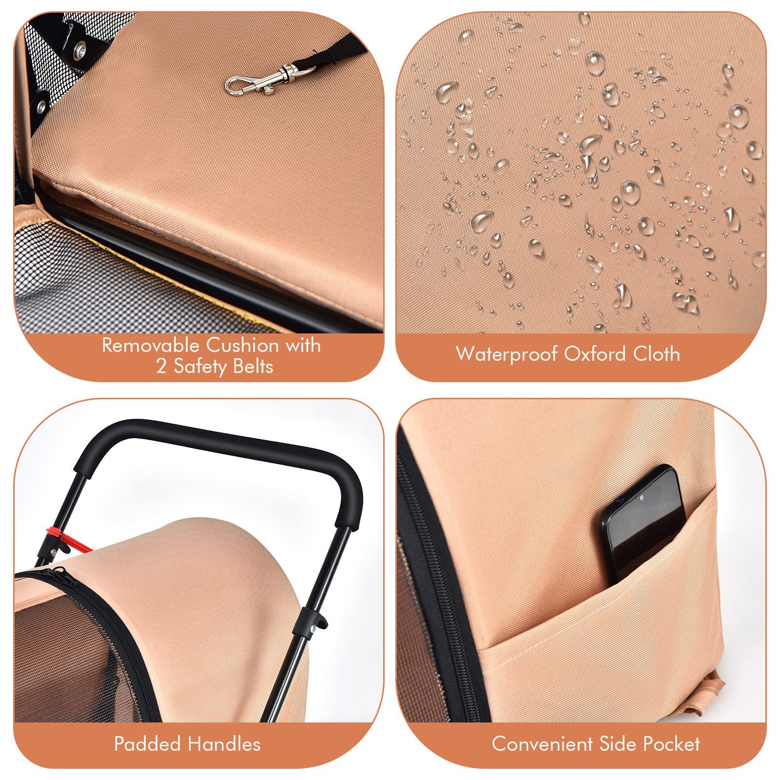 4-in-1 design: double pet stroller, carrier bag, pet crate, car seat carrier