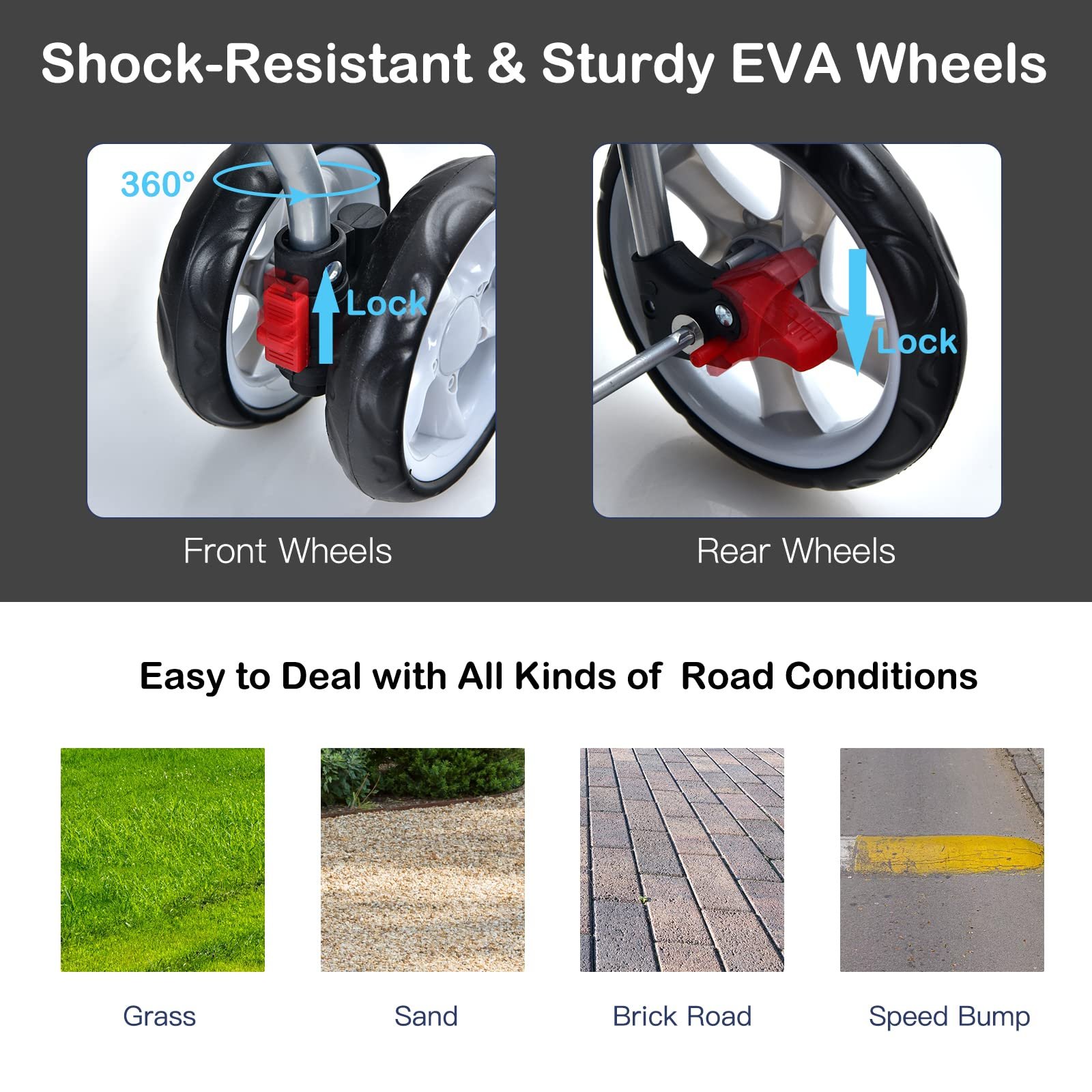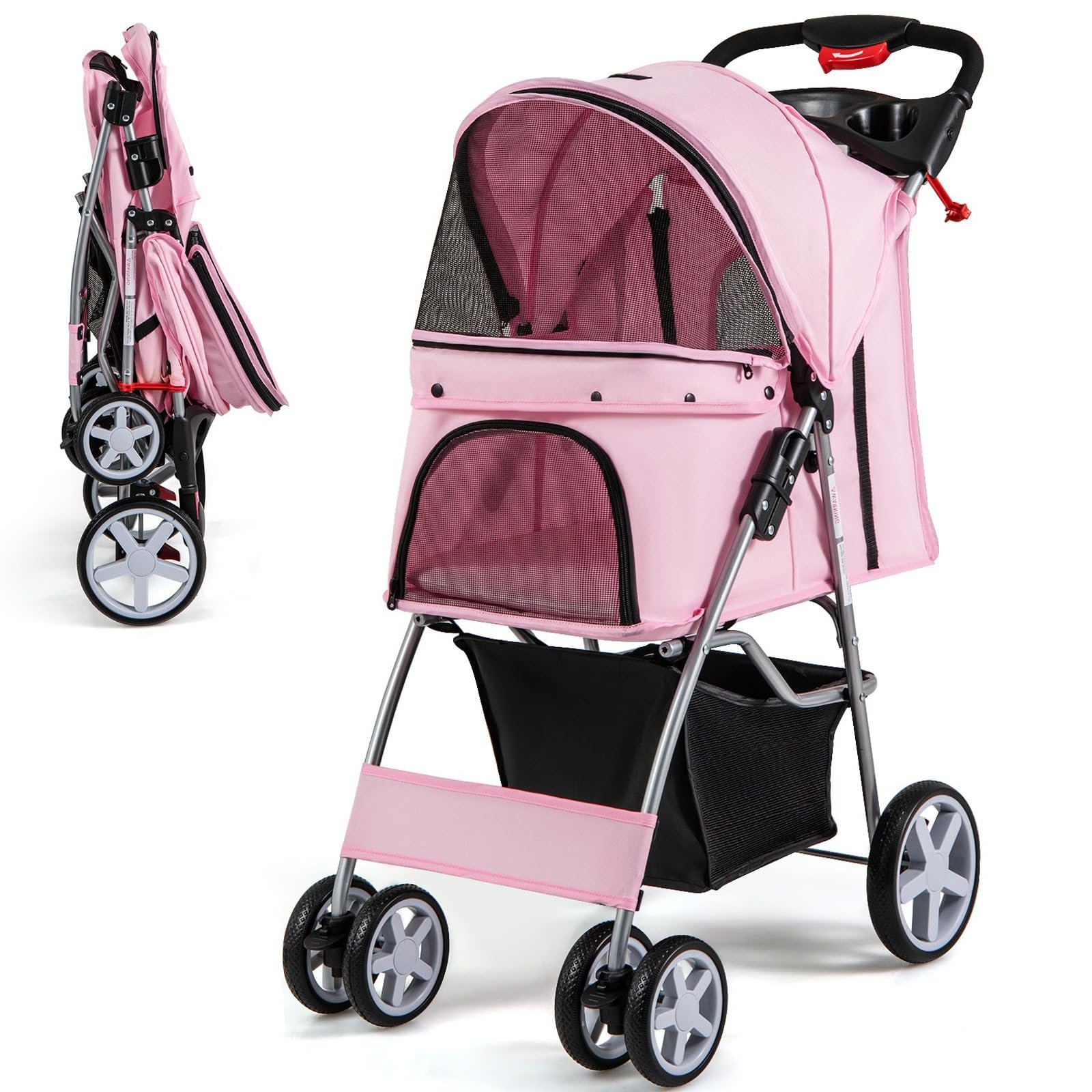 - Folding Design & Travel Wheels: The cat stroller features a simple one-hand mechanism that folds quickly and takes up minimal space, allowing you to store it in your car or other tight spaces in your home. 4 shock-absorbing EVA universal wheels with brakes make it easy to travel with your pet.
