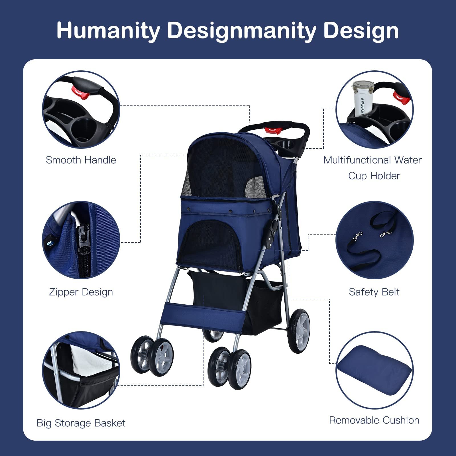 - High Safety Guarantee: 4 mesh windows of our dog stroller are designed for good air ventilation and provide a great view for your pet. A smooth zipper on the mesh window makes it easy for you to remove the mesh. Also, the safety belt in the stroller can prevent the pet from falling or running out.