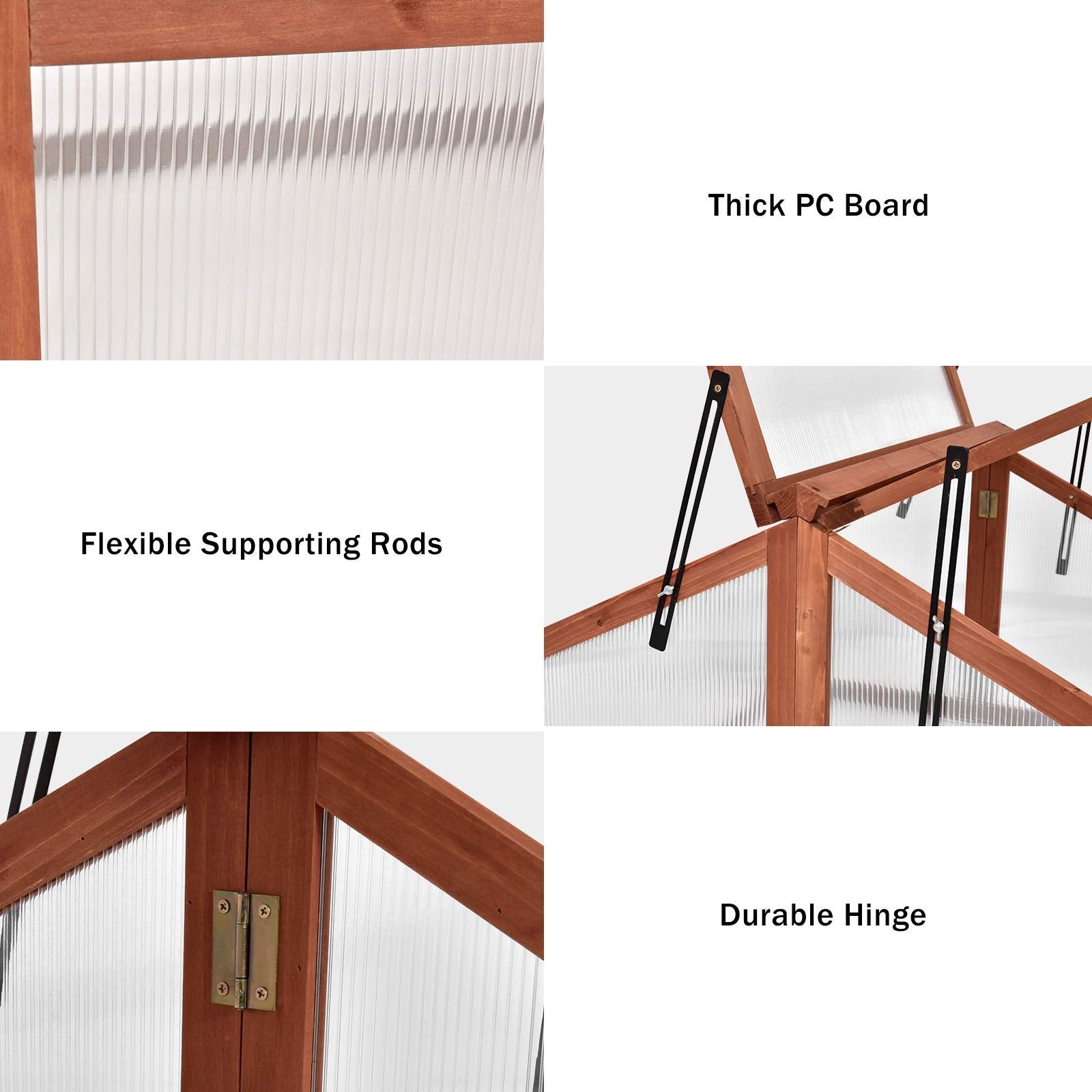 This large, solid wooden greenhouse is perfect for extending your growing season and protecting your plants. Flowers in it can enjoy sunbathing and grow healthy in cloudy, snowy, or other conditions. Feature with a solid fir wood frame, the greenhouse is durable and sturdy. Feature with double box, allowing you to plant many of your favorite plants in all seasons. Perfect size for the mini greenhouse, you can put it in your backyard, garden, yard, and other living space. It will be a functional greenhouse for your planter, but also a great addition to your outdoor living space. Do not hesitate to buy one!