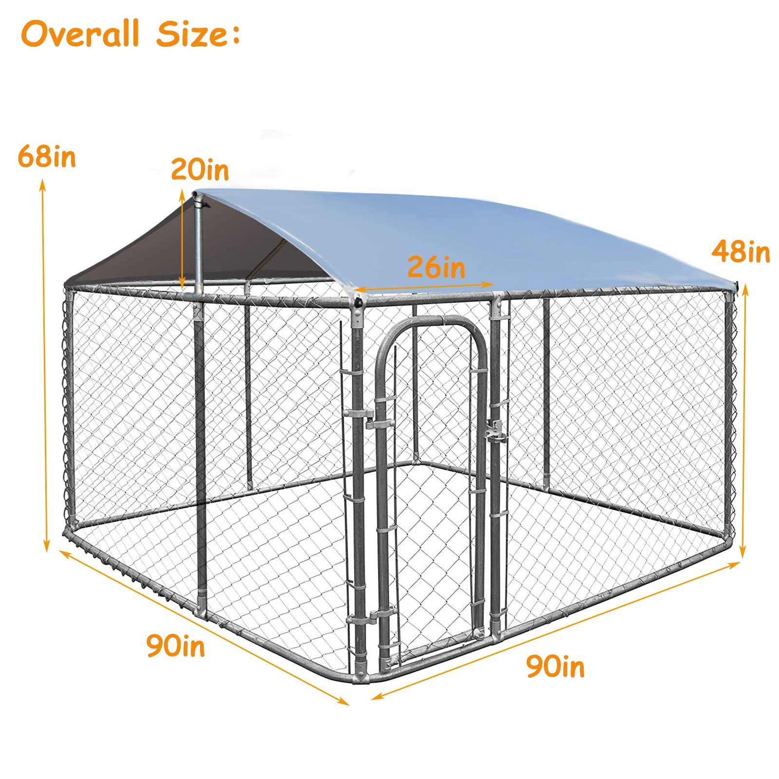 • 【7.5ft x 7.5ft Dog kennel】: The outdoor dog kennel offers a large space for your pets to enjoy running and playing freely. And it can also avoid housebreaking or other destructive behaviors of your dogs.