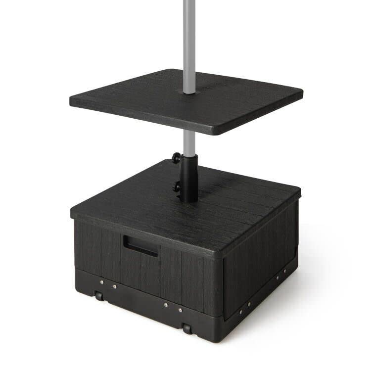 • Umbrella Stand with Adjustable Table: This outdoor umbrella base has a box-shaped design with a lid. It can be used as a garden end table or a planter box for growing flowers or herbs. It also features a table tray that provides easy access to drinks and snacks. (It’s important to note that the adjustable table only fits umbrella poles with a diameter of 1.5”).